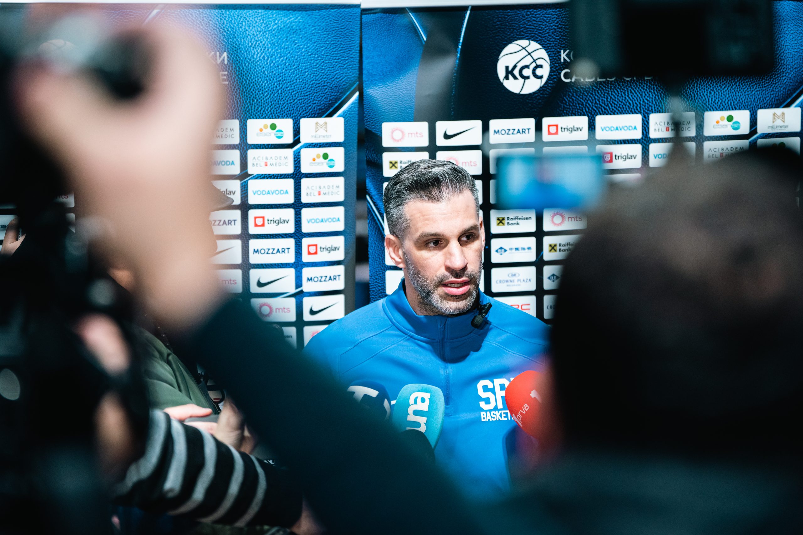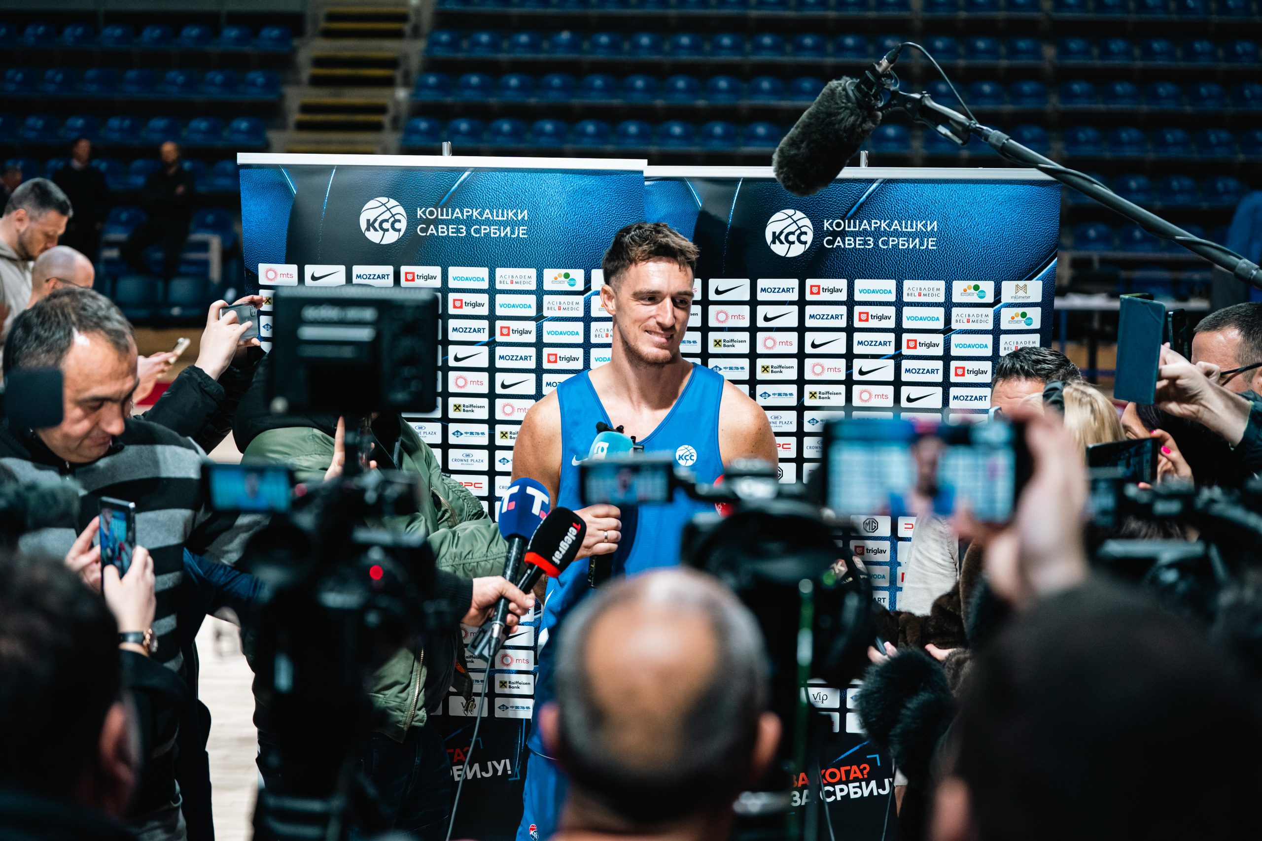 „Нећемо наићи на неку врсту позитивних одговора од клубова играча који су се нашли на списку. Зашто? Ми смо већ имали контакт са клубовима о осталим играчима и већ је ишло у том правцу. Очекујем да ћемо добити исти одговор и од њих. Василије Мицић је био на том списку зато што смо до последњег тренутка чекали одговор Хапоела. Мицић има жељу да игра, Хапоел је одлучио да не пусти ниједног репрезентативца. Није то ништа лично са Мицићем и нама. Исто је и за Дубаи. Додуше, очекујемо Дангубића, исто и за Добрића. Партизан и Црвена звезда су најпозитивније одговорили на наш позив, оба тренера су имали разумевање за наше потребе, али ту је питање повреда играча. Или неке старе или неке тренутне, које треба да се санирају. Ту је Стефан Миљеновић, он се прикључио одмах после утакмице у Бечу. Ситуација са Партизаном је мало другачија јер здравствени билтен је доста лошији. Виша сила је у питању, истичем поново да су Саша и Жељко били јако отворени и пуни разумевања, али стварно је виша сила у питању“, рекао је Алимпијевић.
