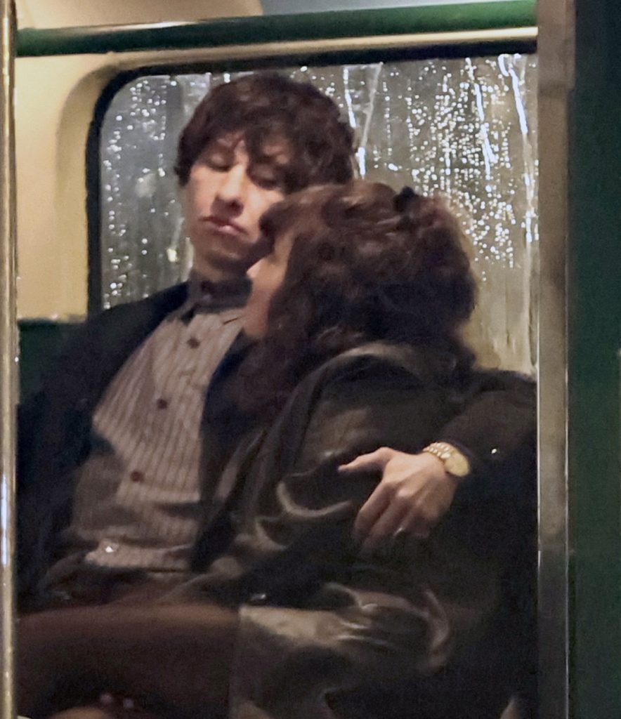Судя по всему, атмосфера 60-х в фильме будет воссоздана максимально точно – от костюмов до локаций. На фото герои сидят в обнимку, видимо, это была романтическая сцена.