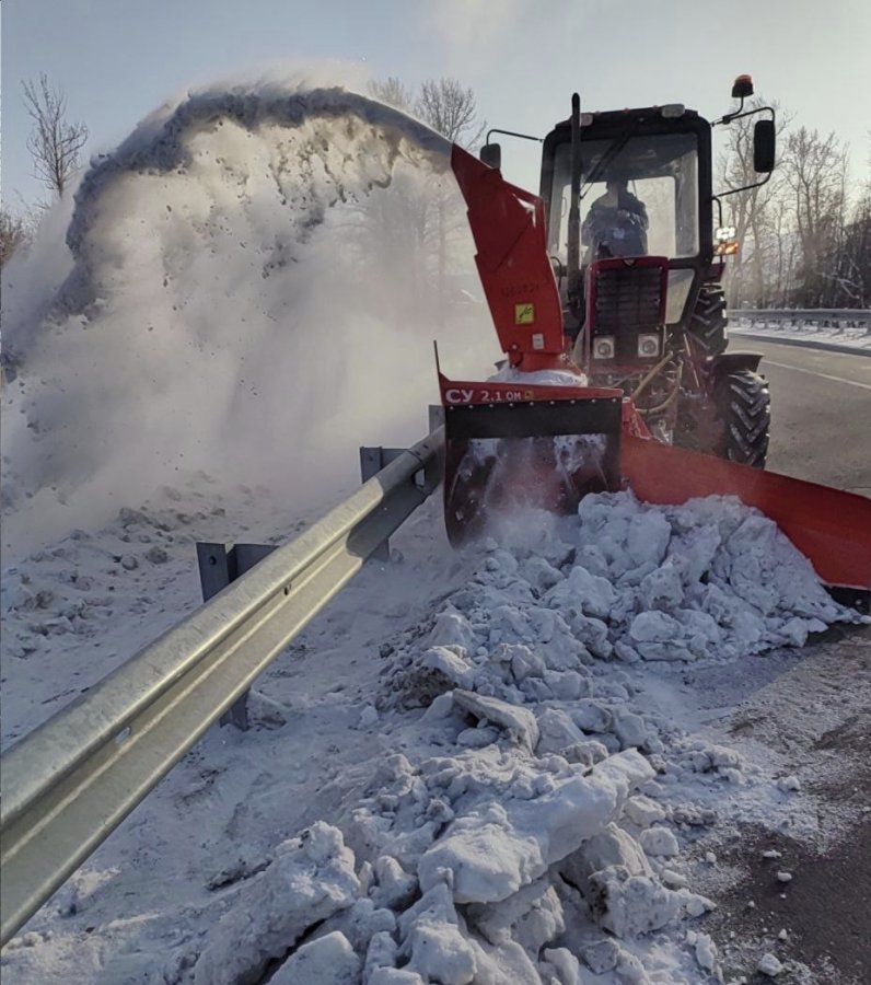 Все единицы техники находятся на дежурстве: регулярно очищаются: проезжая часть и обочины, обрабатывается покрытие противогололедными материалами, удаляются снежные завалы с автодорог. Работы ведутся согласно графику в штатном режиме.