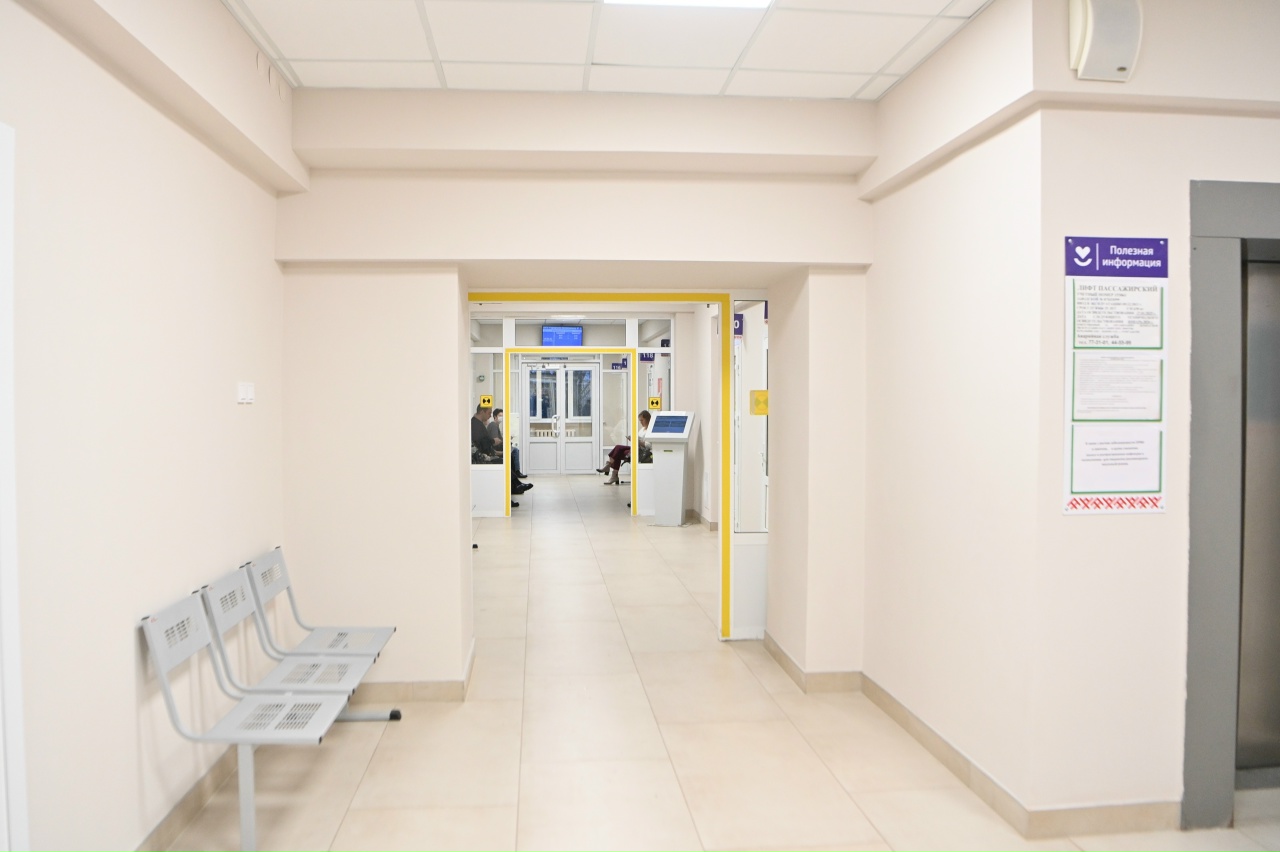 Первый этаж поликлиники полностью обновили. Так, выполнена перепланировка и отделка холла, заменены полы, окна, радиаторы, вся электропроводка.