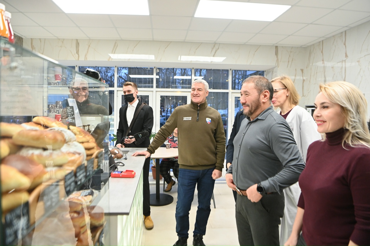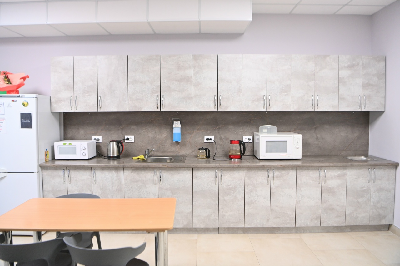 На первом этаже расположились регистратура, гардероб, буфет и аптеки. Отдельно оборудована  изолированную «красную зону» для приёма пациентов с симптомами ОРВИ.