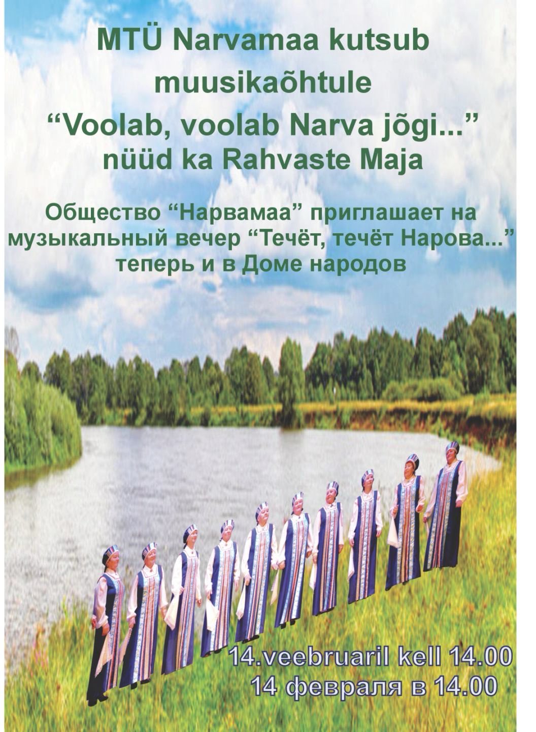 ЧТО? Музыкальный вечер «Течёт, течёт Нарова…» общества «Нарвамаа». Вход свободный.