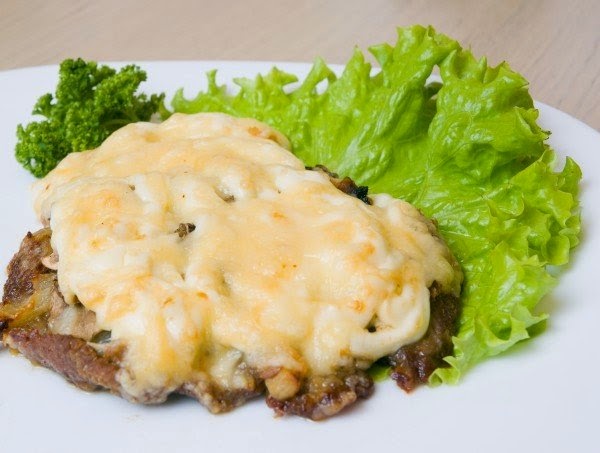 Запеченное мясо с грибами и сыром