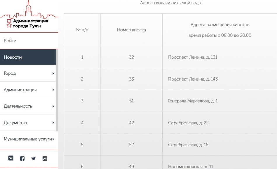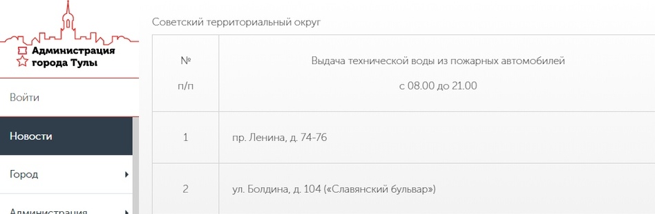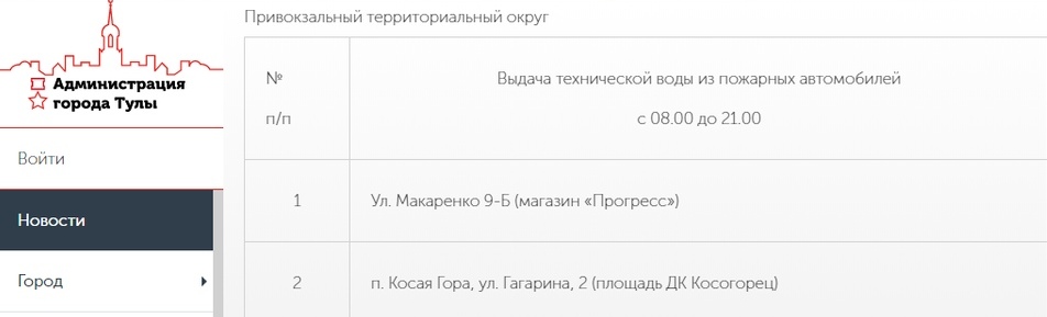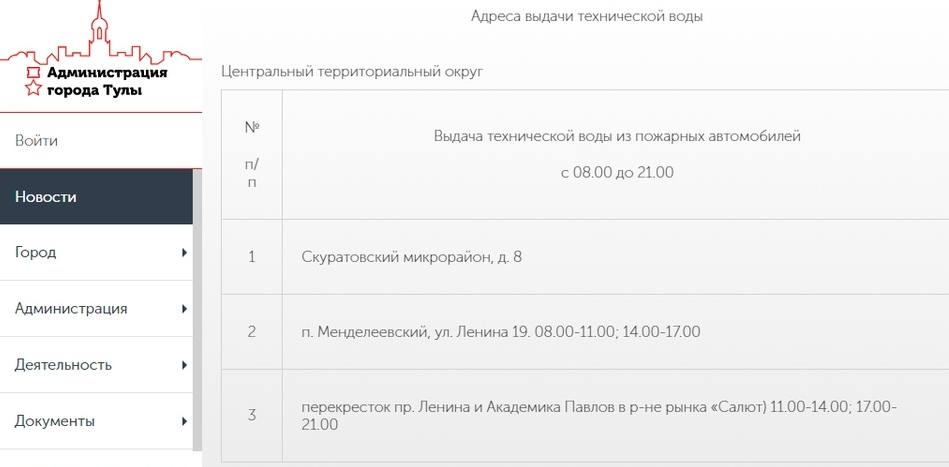 В связи с этим на на улицах Тулы будут бесплатно раздавать техническую и питьевую воду. Информация об этом опубликована на сайте администрации ГО Тула. Сообщаем адреса, по которым тулякам можно будет набрать воды.