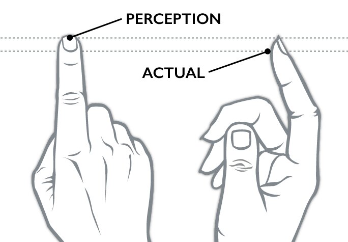 Также Косиенда раскрыл другие нюансы, среди которых — создание большей виртуальной области, чем объекты в интерфейсе. Это сделано из-за того, что воспринимаемое пользователем место нажатия по экрану и его реальное место нажатия отличаются — система должна была «предугадать», чего пользователь действительно хотел коснуться. Эта функция пригодилась и для функции автокоррекции клавиатуры, так как она идентифицирует буквы, окружающие некорректную.