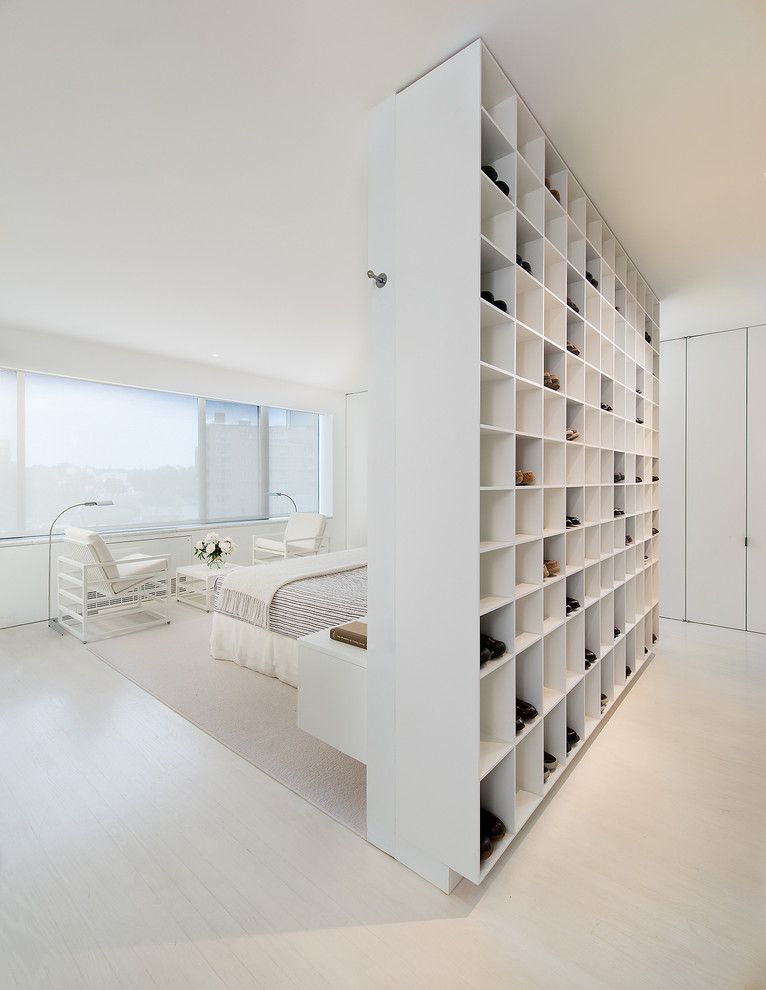 Перегородка служит одновременно и стеллажом — практично и красиво