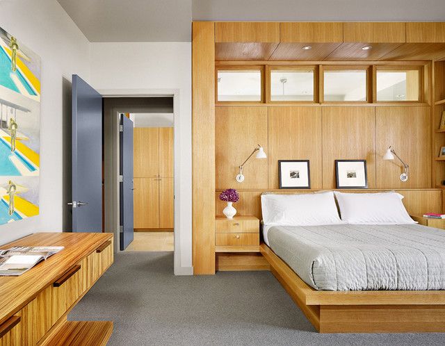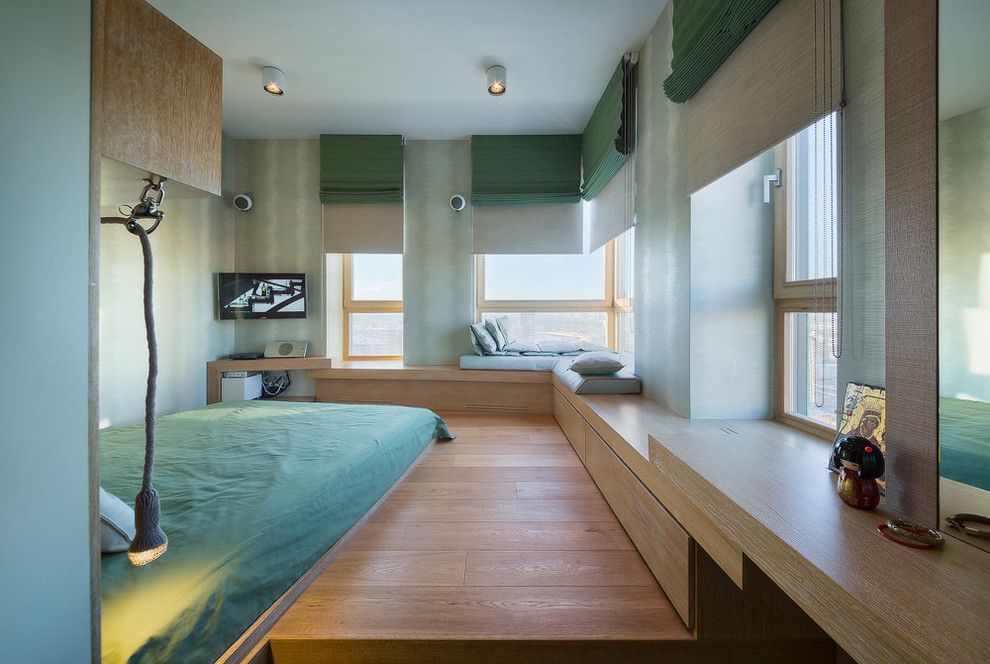 Спальня в современном стиле, сочетающая домашний уют и необычные, свежие дизайнерские идеи