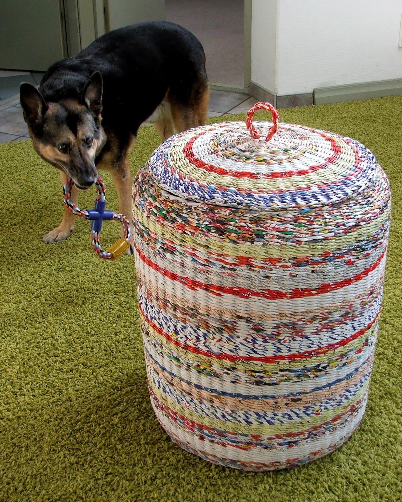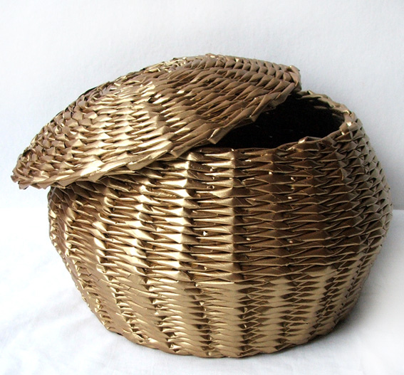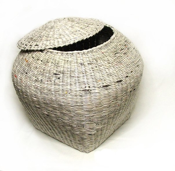 Плетеная корзинка из газетных трубочек с крышкой
