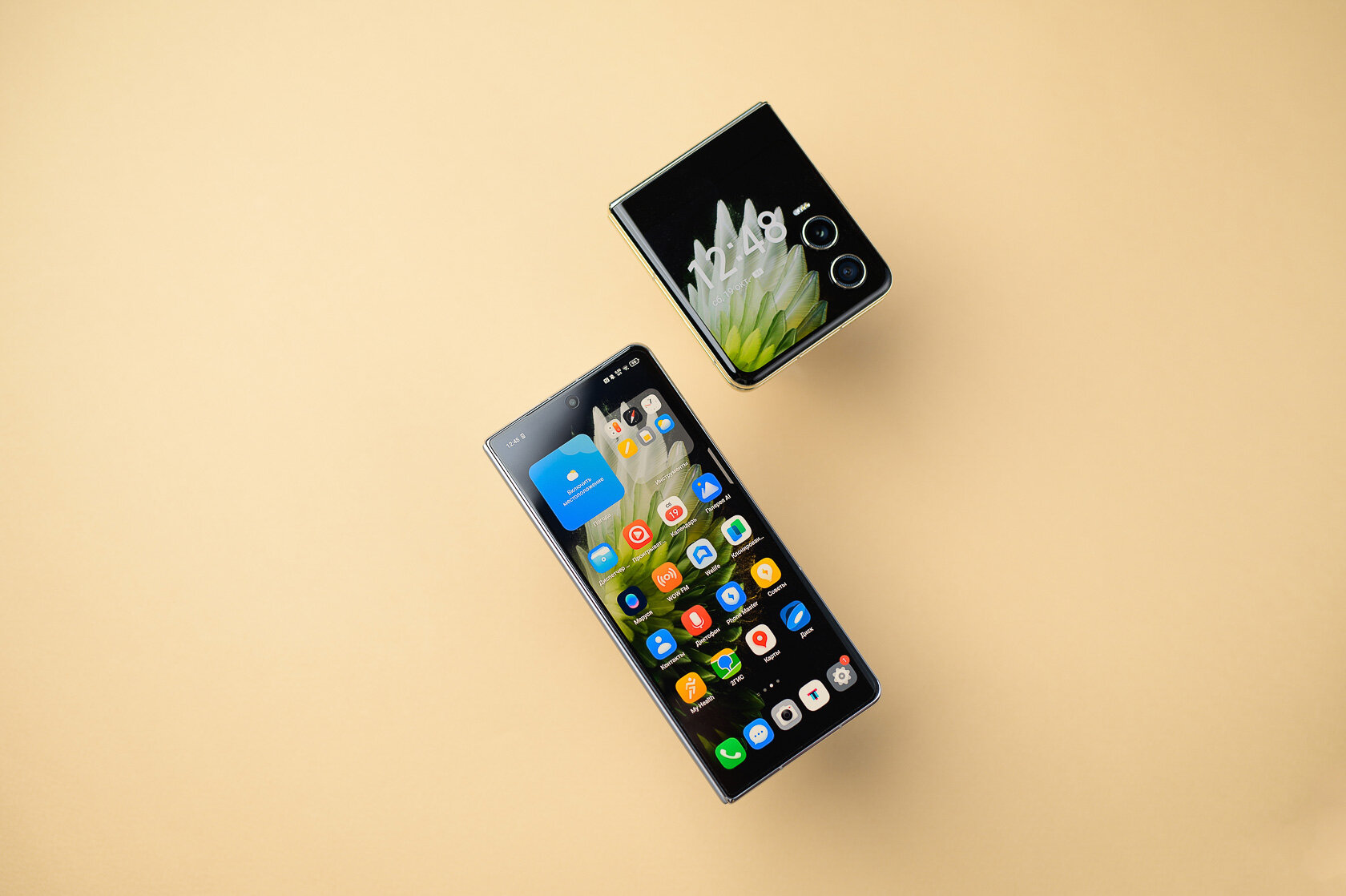 Бо́льшая диагональ основного дисплея Phantom V Fold2 подразумевает более сложные задачи, так что и процессор здесь помощнее — MediaTek Dimensity 9000+. В результате смартфон может всё то же самое, что и собрат, но лучше справляется с тяжёлыми ААА-играми — например, можно поставить максимальное качество графики или редактировать видео с повышенным комфортом.