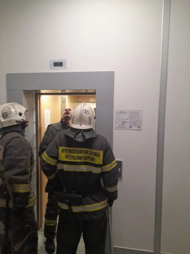 В Медвежьегорске пожарным пришлось спасать толпу детей, застрявшую в школьном лифте.