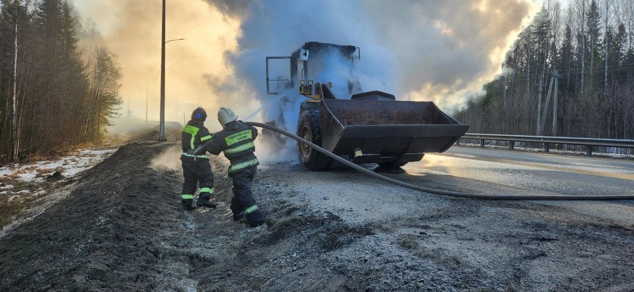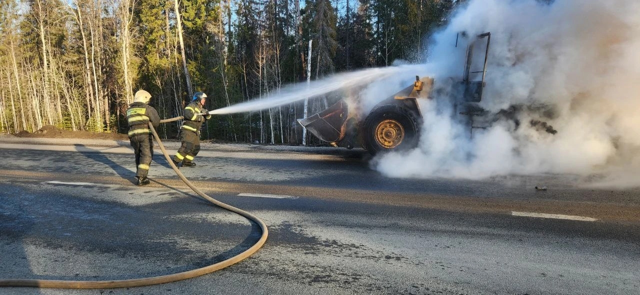 Дорожная техника загорелась в 08:38. На место выехали пожарные. Потушили погрузчик почти через час, в 09:30.