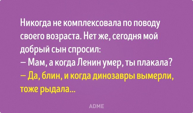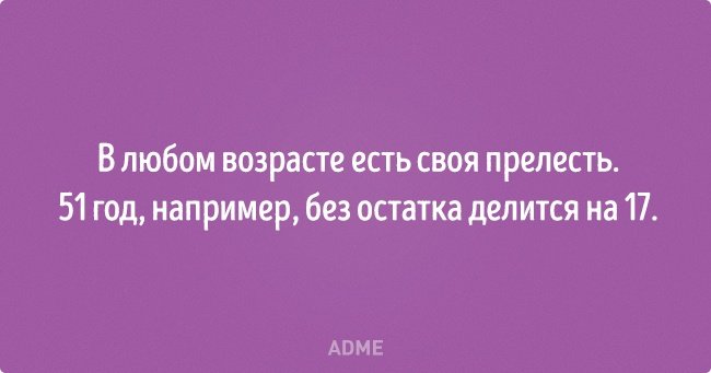 Возраст — одна из самых благодарных тем для шуток! Потому что в любом возрасте человек замечает за собой некоторые особенности, над которыми родные, друзья, сверстники или коллеги всегда готовы подтрунить. А это значит, что можно придумать шутку на каждый год жизни!