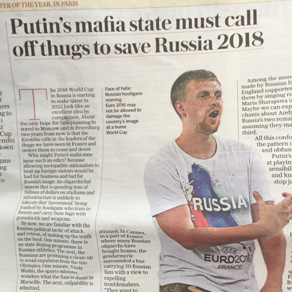 Термин Putin's mafia state стал нормой на Западе. Свежий @DailyTelegraph, например. Путин угробил репутацию России.
