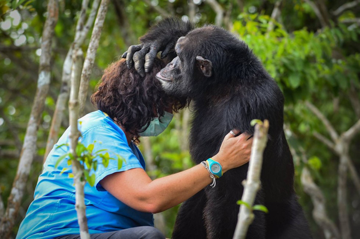 Когда в ферале этого года Эстель Рабалланд (Estelle Raballand), основательница Центра по Спасению Шимпанзе в Гвинее, впервые прибыла на остров, она увидела Понзо (Ponso), встречающего ее с открытыми руками. После нескольких лет одиночества, ему, видимо, казалось, что он больше никого никогда не увидит. К этому моменту Понзо исполнилось около 40 лет, и будет ли он продолжать жить в одиночестве или сможет переехать в более приемлемое место, зависит от его анализов крови.