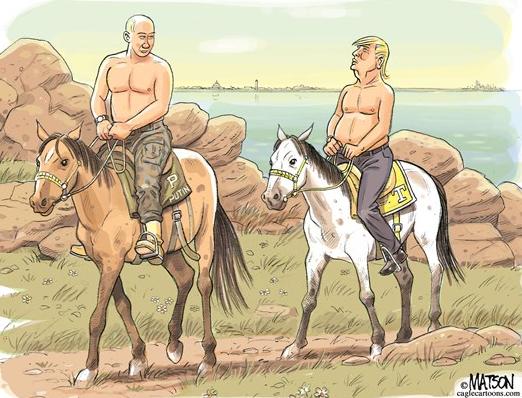 Например, не имея к этому никаких фактических оснований карикатуристы фабрикуют одну за другой картинки Путина с Трампом, которые должны оттолкнуть от Трампа, придать его образу еще одну негативную грань.