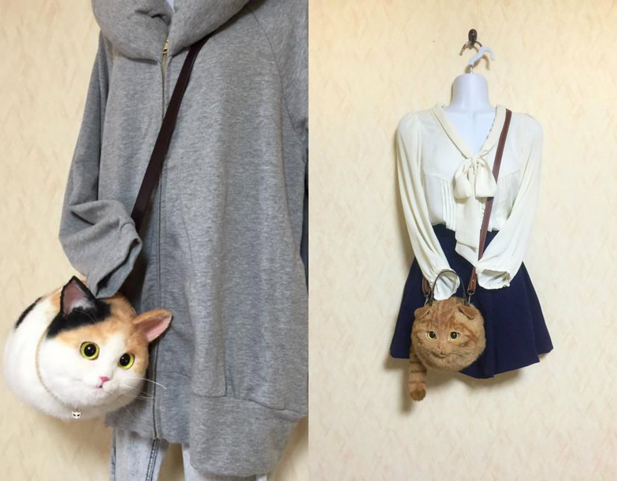 Автором этого чуда стала самая обычная японская домохозяйка по имени Пико. Любимым животным женщины всегда были кошки. И вот, в один прекрасный момент любовь эта вылилась в серию сумок, созданных по образу и подобию усатых-полосатых (причем самых упитанных экземпляров).