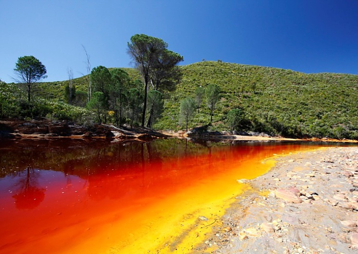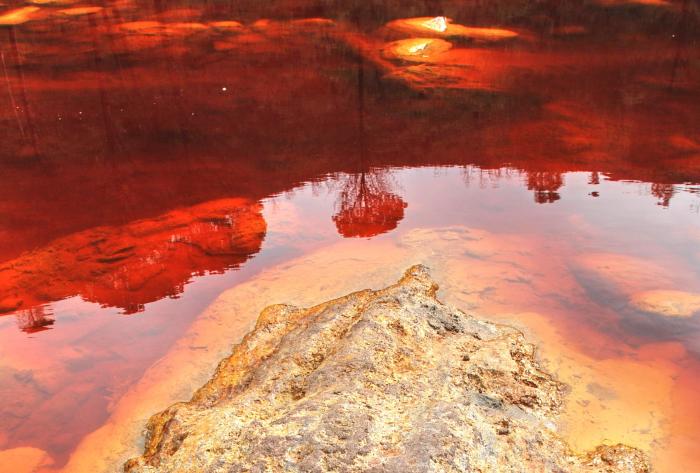 Около 3000 г. до н.э. в районах вокруг реки Рио-Тинто (Rio Tinto, Красная река) на юге Испании начали разрабатывать богатые месторождения золота, серебра, меди и других ценных минералов. С тех пор вода загрязнена тяжелыми металлами, химикатами горнодобывающей промышленности и кислотами.