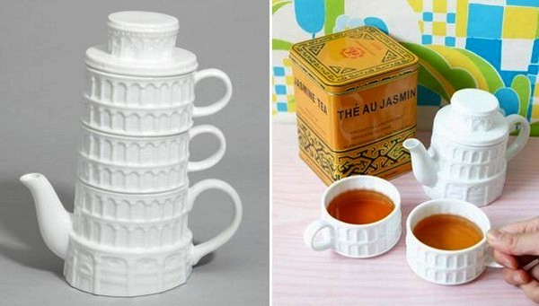11. Чайник и набор чашек Tower of Teasa имитируют знаменитую Пизанскую башню.
