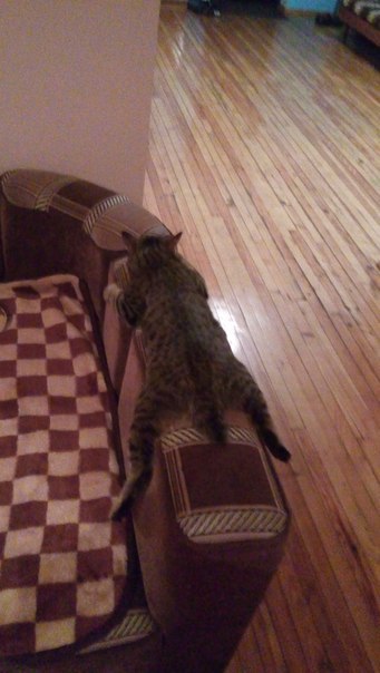 В марте шли с подругой с работы и услышали писк, подошли, а там совсем маленький котенок вмерз всеми четырьмя лапами в лед! Сбегали за водой, полили на лапы чтоб освободить его. Забрала к себе)) два дня спал у батареи, а потом поехал жить к родителям. Через месяц из-за обморожения отпал хвост, жалко конечно... Но зато не прищемят и не наступят))) теперь это здоровый и наглый котяра, наш Василий))
