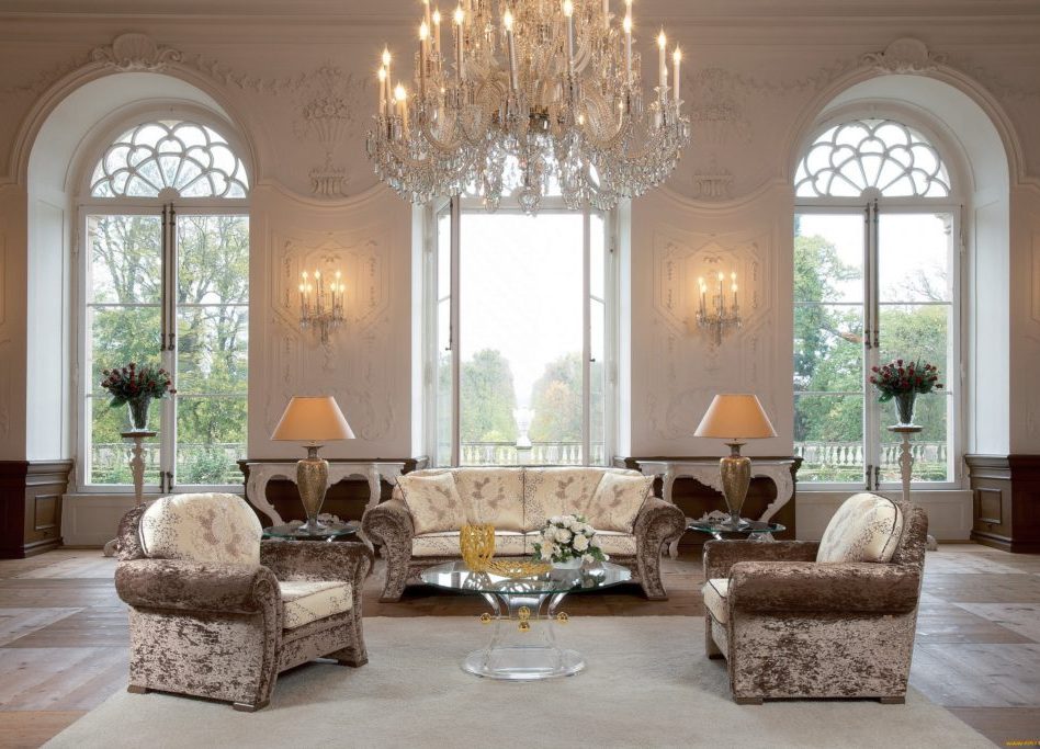 Если говорить о мебели, то она, как правило, имеет элегантный вид, и может принадлежать к стилевым направлениям разных эпох, что будет создавать особую атмосферу в интерьере. Кресла и диваны имеют ножки с изгибами и высокие спинки, а обивочная ткань отличается хорошим качеством.