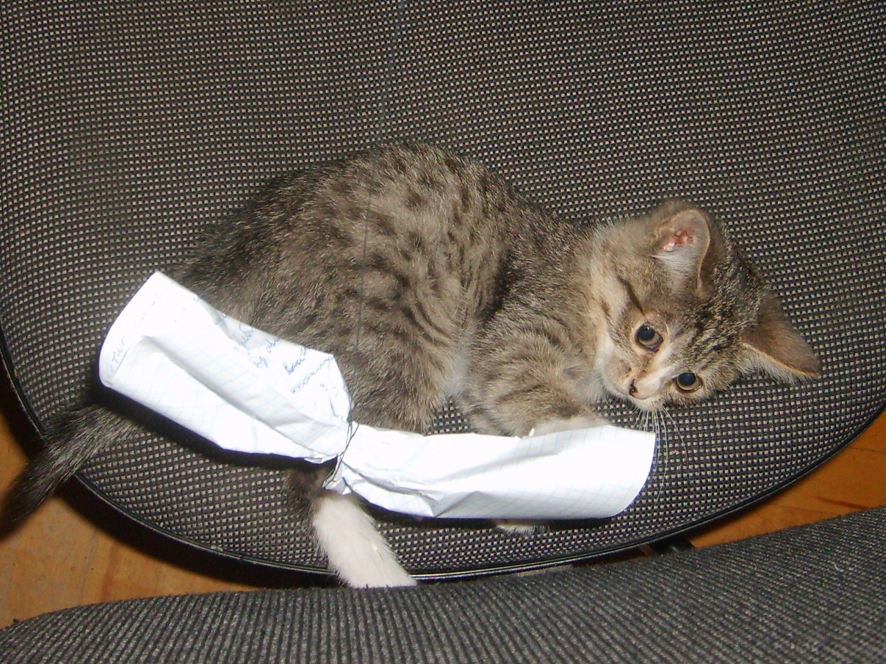 Через полтора года я закончила школу и в день выпускного брат принес еще котенка...Мы были в шоке! Кошечка видимо выпала из окна: сломаны 7 ребер, правые лапки, нижняя челюсть + сотрясение мозга, отбиты внутренние органы + разорвано небо....Ветеринар сказал: "2 операции и жить будет". И началось: бинты, шприцы с паштетом, бессонные ночи...И через шесть недель у нас здоровая худышка и толстый здоровяк!!!