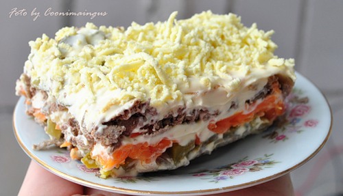 -оставшаяся печень, лук, огурчики и промазать густо майонезом
