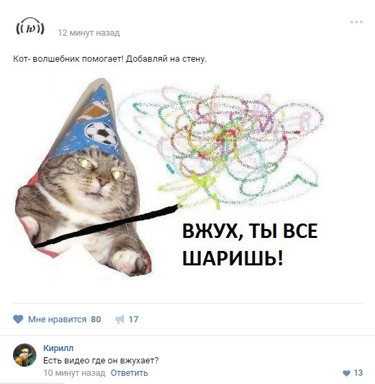Попав в Рунет, фотография тут же обрела вторую жизнь: кто-то вырезал кота, дорисовал ему волшебную палочку, и теперь кот-колдун с помощью звука "Вжух" ускоряет любой процесс!