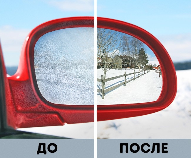 Этой проблемы можно избежать, если перед тем, как оставить машину на улице, завернуть боковые зеркала в полиэтиленовые пакеты.